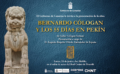 Pero Cólogan no mostró ahí sus mejores desempeños, porque el destino le aguardó uno más remoto, China o el Imperio del Centro. Saber porque fue destinado hasta allí es un misterio, tal vez por su facilidad para los idiomas o tal vez porque ya había estado allí cuando solo tenía 22 años como joven de lenguas. El caso es que en 1895 retornó a Pekín con cincuenta años y el azar le colocó como decano de todos los representantes diplomáticos cuando el levantamiento popular de los bóxers llegó a su punto álgido. España poco o nada se jugaba en aquella afrenta, pero él supo jugar sus bazas y, de forma individual, sin mayor respaldo que sus dos secretarios, se impuso como el representante de occidente tras los 55 días del brutal asedio. Ahí es cuando explotó su buen hacer como negociador entre Oriente y Occidente, pero mejor no desvelar nada de esto pues él mismo se encargó de documentarlo y traerlo bajo el brazo en un glorioso libro de recuerdos del que nadie supo su existencia hasta 2008.